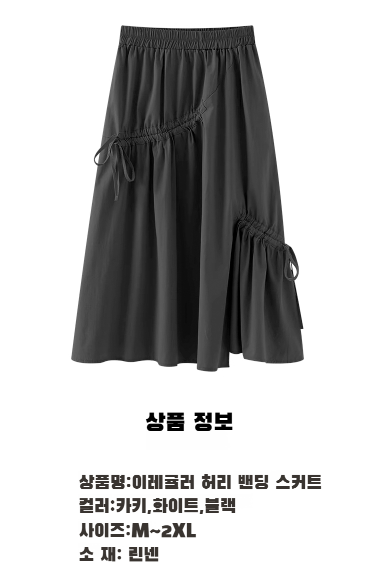 반신 스커트 여성 패션 캐주얼 스커트 언밸런스 셔링 미디 밴딩 허리 A라인 스커트 스트링 밴딩 하이웨스트 봄여름 스커트